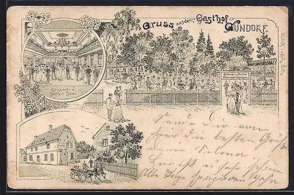 Lithographie Gundorf, Gasthof mit Balsaal und Garten