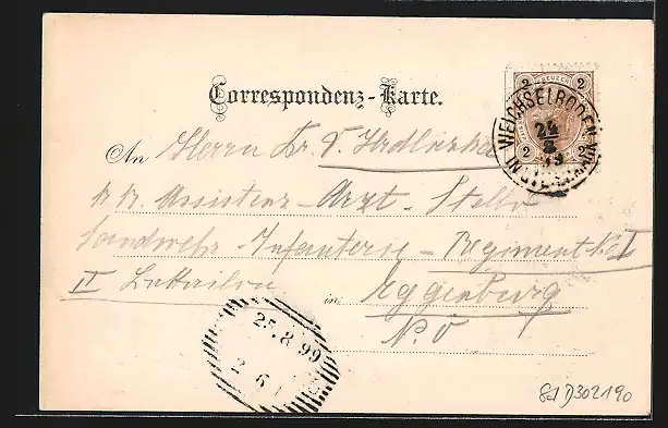 gelaufen 1899, Eckknick li. oben, Stempelspur, guter Zustand