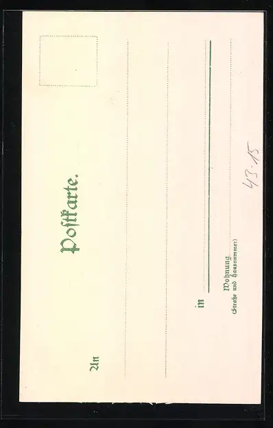 Personenbezogene Daten auf der Rückseite der Karte wurden durch blauen Textmarker unkenntlich gemacht. Die blauen Stellen sind auf die Vorderseite durchgeweicht und wirken sich negativ auf das Postkartenfoto aus