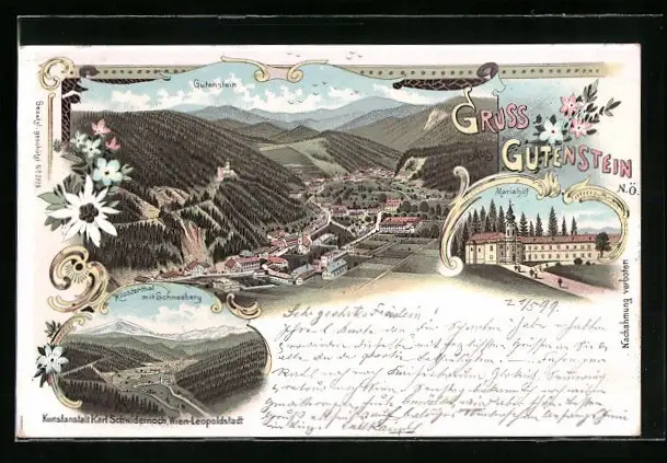 Lithographie Gutenstein, Gesamtansicht mit Klosterthal