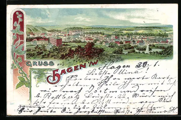 Lithographie Hagen i. W., Totalansicht der Stadt