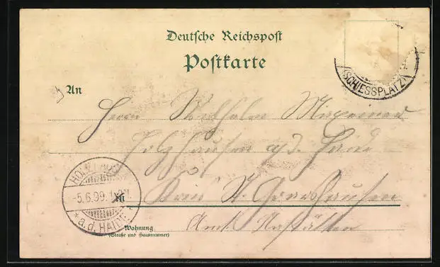 gelaufen 1899, Briefmarke tw. entfernt, guter Zustand