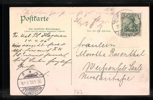 Personenbezogene Daten auf der Rückseite der Karte wurden durch blauen Textmarker unkenntlich gemacht. Die blauen Stellen sind auf die Vorderseite durchgeweicht und wirken sich negativ auf das Postkartenfoto aus