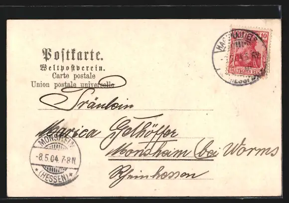 gelaufen 1904, Eckknick oben li., guter Zustand