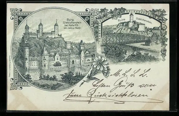 Lithographie Halle /Saale, Ruine Giebichenstein
