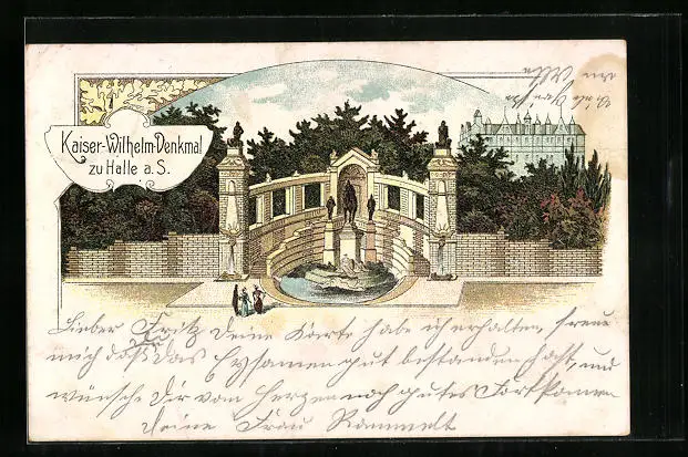 Lithographie Halle a. S., Kaiser-Wilhelm-Denkmal
