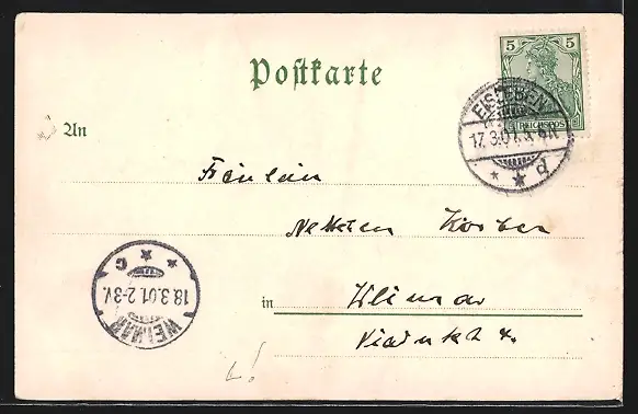 gelaufen 1901, minimaler Einriss li. mittig, guter Zustand