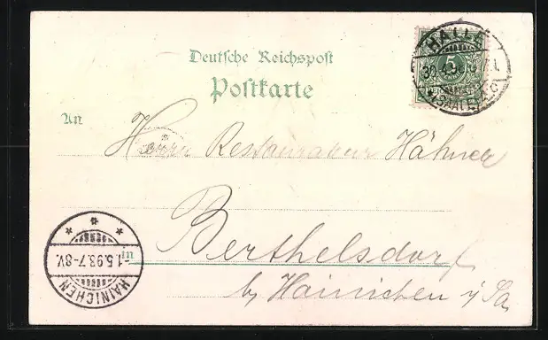 Lithographie Halle a. S., Promenade und Post, Bahnhof