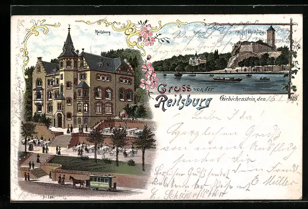 Lithographie Halle a/Saale, Gasthaus Reilsburg, Burg Giebichenstein