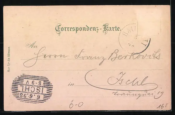 gelaufen 1898, Briefmarke entfernt, rückseitig Oberflächenschaden, guter Zustand