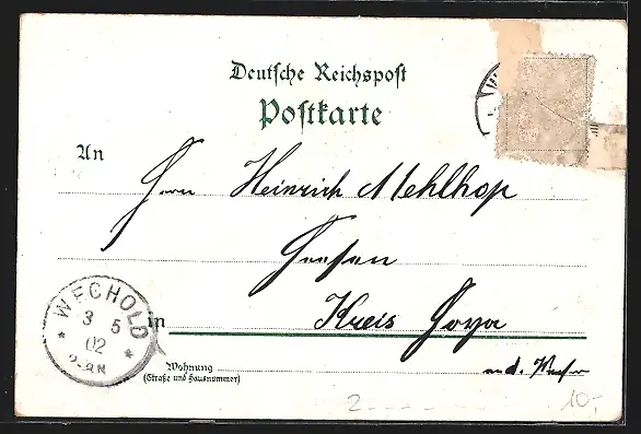 gelaufen 1902, Briefmarke entfernt, rückseitig Oberflächenschaden, guter Zustand