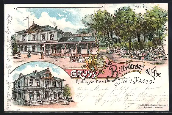 Lithographie Hamburg-Billwärder, Etablissement J. W. v. Have, Park