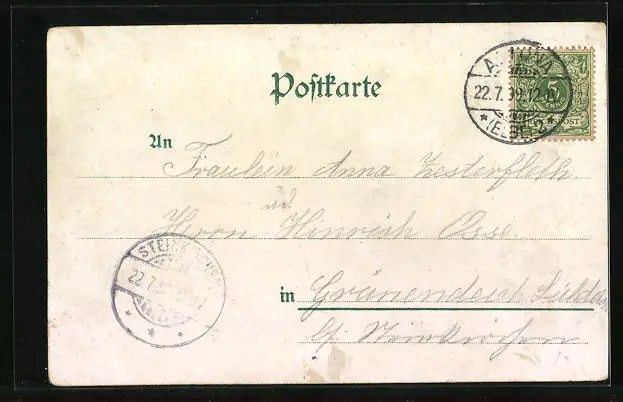 gelaufen 1909, rückseitig Klebe- und Papierreste, guter Zustand