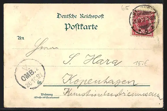 Personenbezogene Daten auf der Rückseite der Karte wurden durch blauen Textmarker unkenntlich gemacht. Die blauen Stellen sind auf die Vorderseite durchgeweicht und wirken sich negativ auf das Postkartenfoto aus