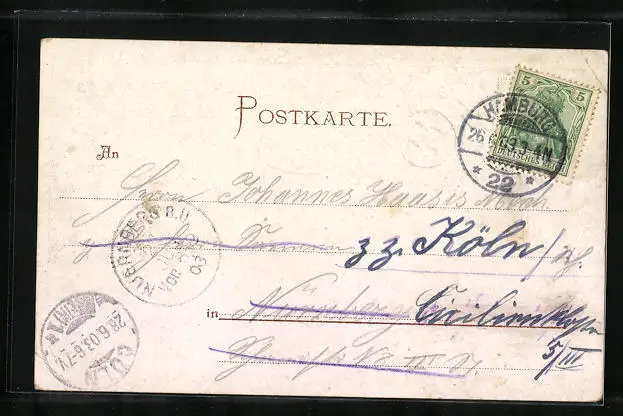 gelaufen 1903, Eckknick oben li. u. unten re., guter Zustand