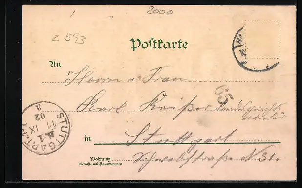 gelaufen 1902, Briefmarke entfernt, Eckknick li. oben, guter Zustand
