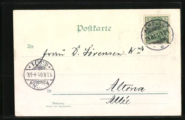 gelaufen 1901, Eckknick re. unten, guter Zustand