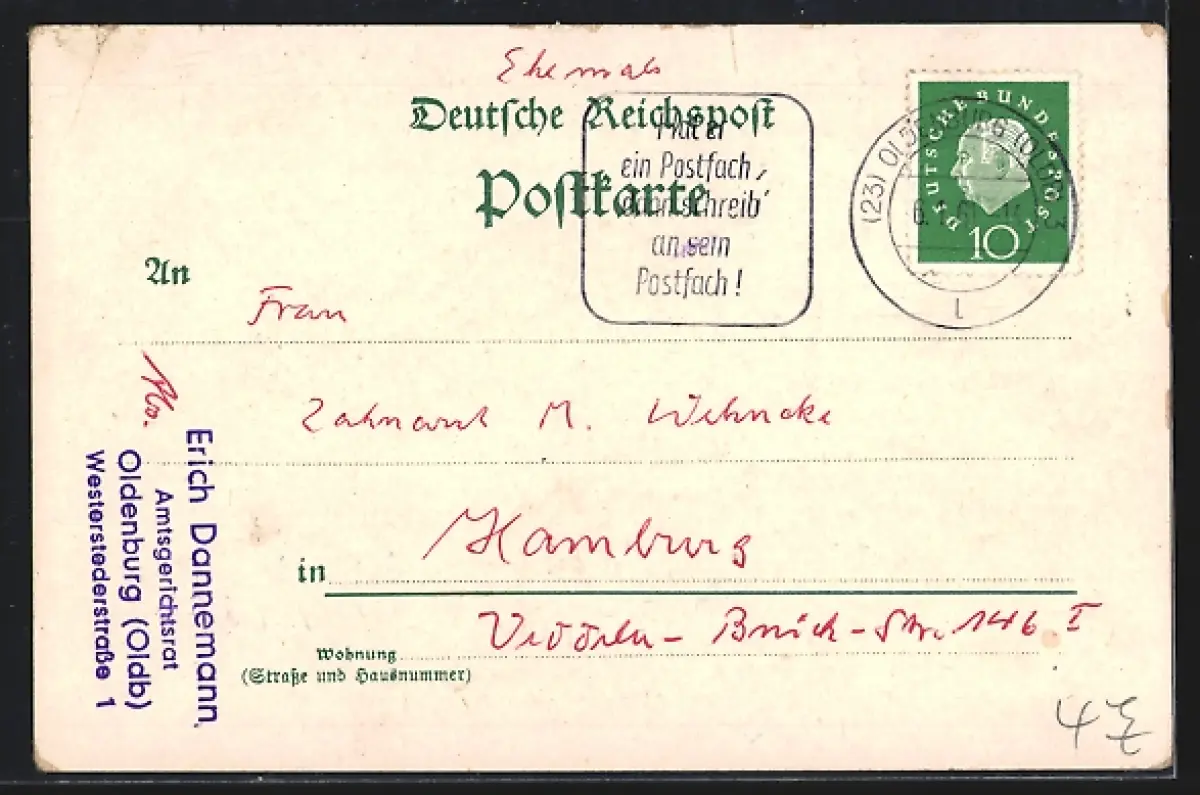 gelaufen 1961, Eckknick re. oben, guter Zustand