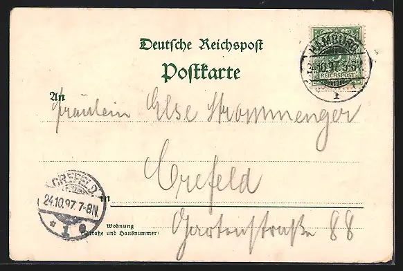 gelaufen 1897, Eckknicke li. oben, Ecken bestoßen, guter Zustand