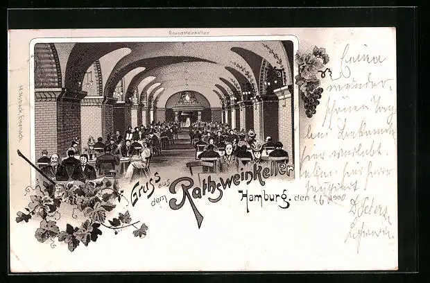 Lithographie Hamburg, Rathsweinkeller mit Gästen