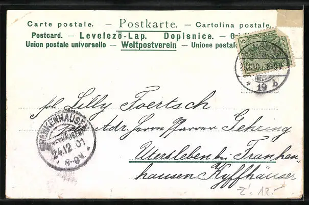 gelaufen 1901, Eckknicke oben, rückseitig Klebe- und Papierreste, guter Zustand