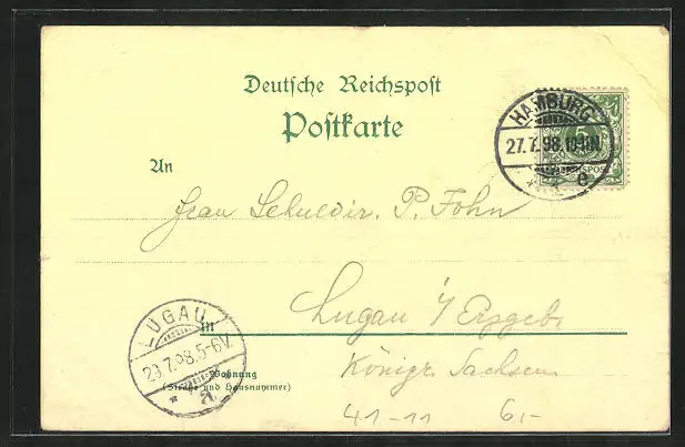 gelaufen 1898, Eckknick li. oben, guter Zustand