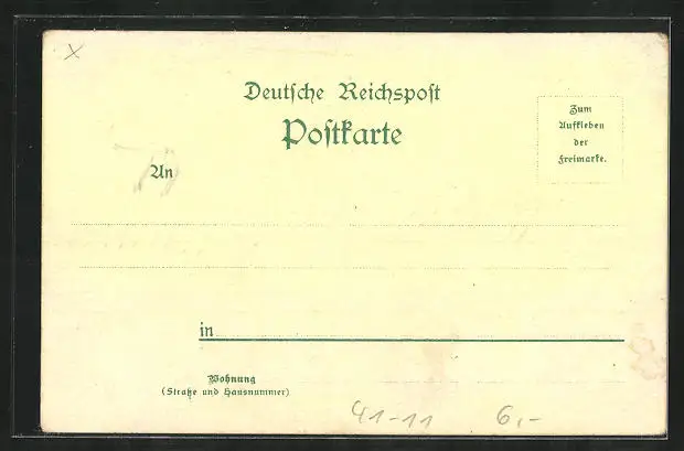 Personenbezogene Daten auf der Rückseite der Karte wurden durch blauen Textmarker unkenntlich gemacht. Die blauen Stellen sind auf die Vorderseite durchgeweicht und wirken sich negativ auf das Postkartenfoto aus