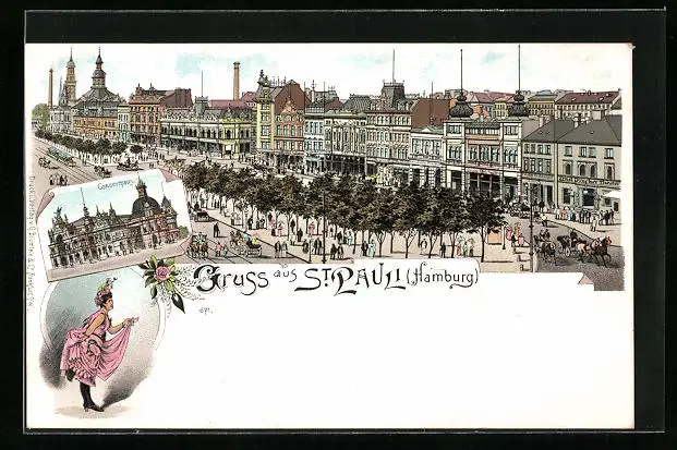 Lithographie Hamburg-St. Pauli, Concerthaus, Gesamtansicht