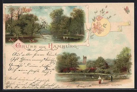 Lithographie Hamburg-St.Pauli, Botanischer-Garten, Zoologischer Garten