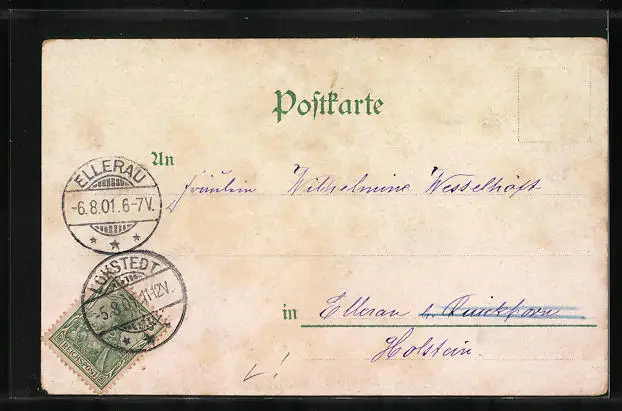 gelaufen 1901, Ecken bestoßen, Stempelspur, sonst guter Zustand