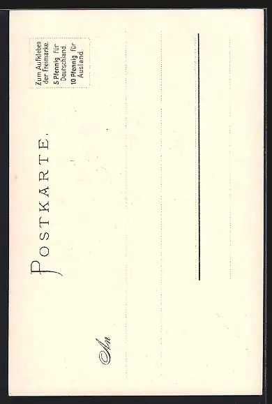 Personenbezogene Daten auf der Rückseite der Karte wurden durch blauen Textmarker unkenntlich gemacht. Die blauen Stellen sind auf die Vorderseite durchgeweicht und wirken sich negativ auf das Postkartenfoto aus