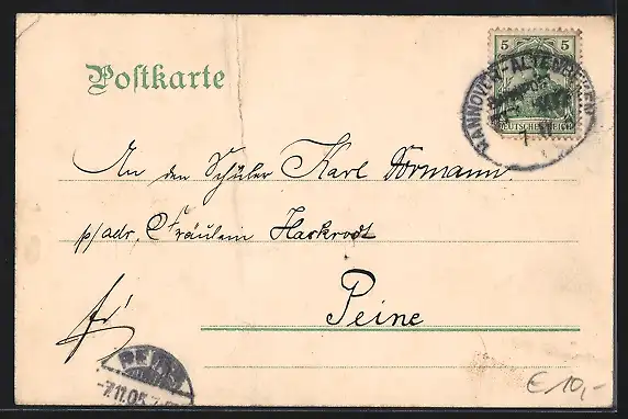 gelaufen 1905, Eckknick re. oben, Bugspur oben mittig, guter Zustand