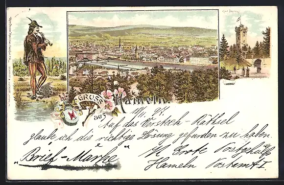 Lithographie Hameln, Der Rattenfänger von Hameln, Klüt-Thurm