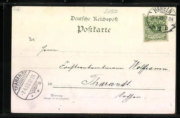 gelaufen 1899, Einrisse oben mittig, guter Zustand