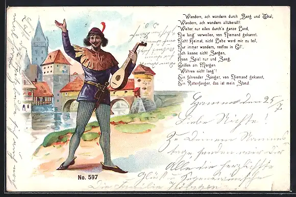 Lithographie Hameln, Rattenfänger von Hameln am Stadtrand