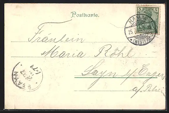 gelaufen 1900, Bugspur oben li., guter Zustand
