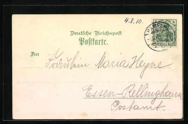gelaufen 1910, Eckknick li. unten, guter Zustand