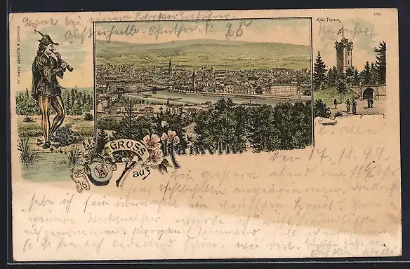 Lithographie Hameln, Stadtansicht, Rattenfänger und Klüt-Turm