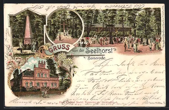 Lithographie Hannover-Bemerode, Gasthaus zur Seelhorst mit Garten