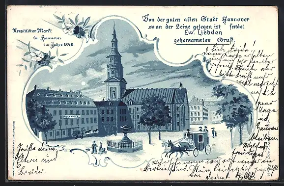 Lithographie Hannover, Blick auf den Neustädter Markt