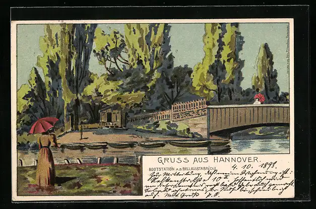 Lithographie Hannover, Bootstation an der Bellavistabrücke
