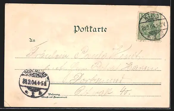 gelaufen 1904, Eckknick unten re., guter Zustand