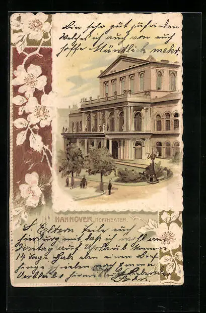 Lithographie Hannover, Hoftheater im Blütenrahmen