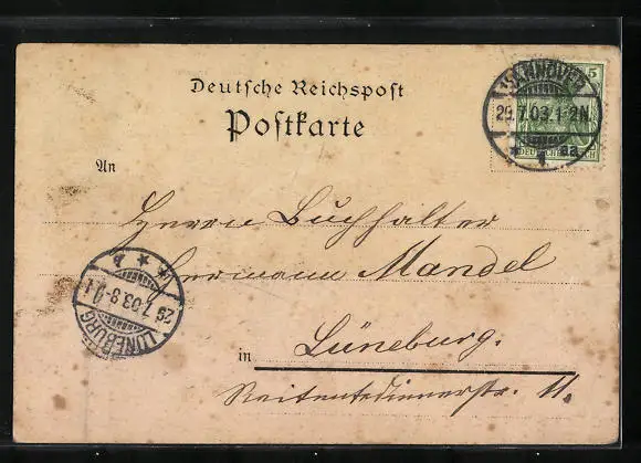 gelaufen 1903, Eckknick li. oben, Stempelspur, Bugspur li. mittig, guter Zustand