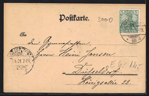 gelaufen 1901, Eckknick re. unten, guter Zustand