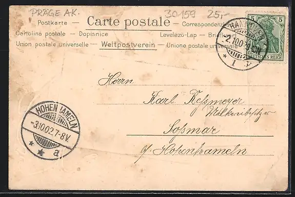 gelaufen 1902, Eckknick li. unten, guter Zustand