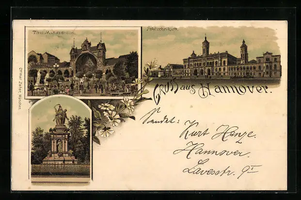 Lithographie Hannover, Polytechnikum, Tivoli Musikpavillon
