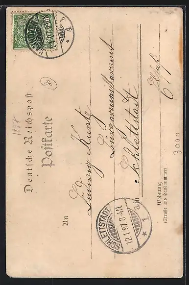 gelaufen 1897, Ecken bestoßen, guter Zustand