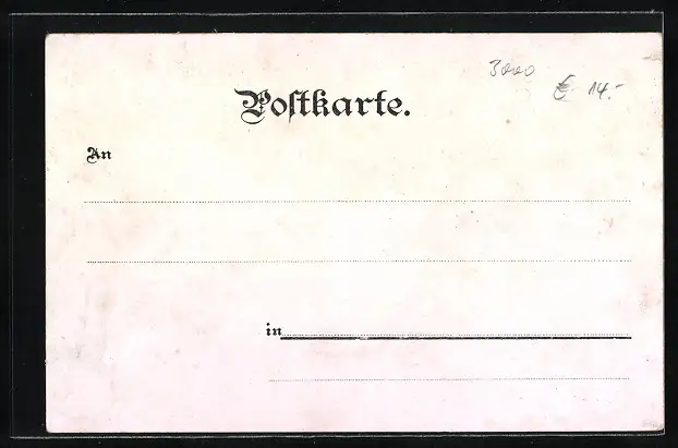 Personenbezogene Daten auf der Rückseite der Karte wurden durch blauen Textmarker unkenntlich gemacht. Die blauen Stellen sind auf die Vorderseite durchgeweicht und wirken sich negativ auf das Postkartenfoto aus