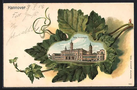 Lithographie Hannover, Techn. Hochschule in einem Blatt dargestellt